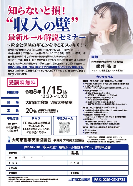 1月15日(木) 知らないと損!「収入の壁」最新ルール解説セミナー開催!