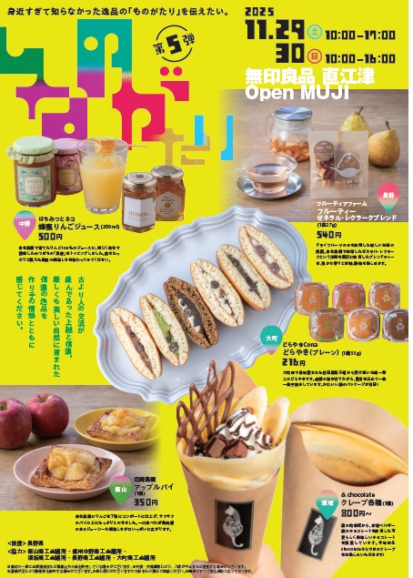 11月29日(土)・30日(日) 新潟県上越市「無印良品 直江津」にて「第5弾しなのがたり」が開催されます!